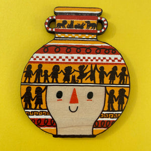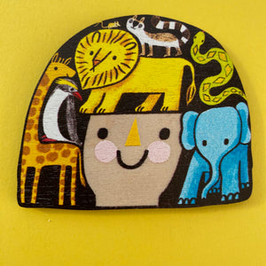 Her current collection includes wooden hand painted jewellery, screen printed tea towels, screen printed apparel, decorations, cards and framed pieces.