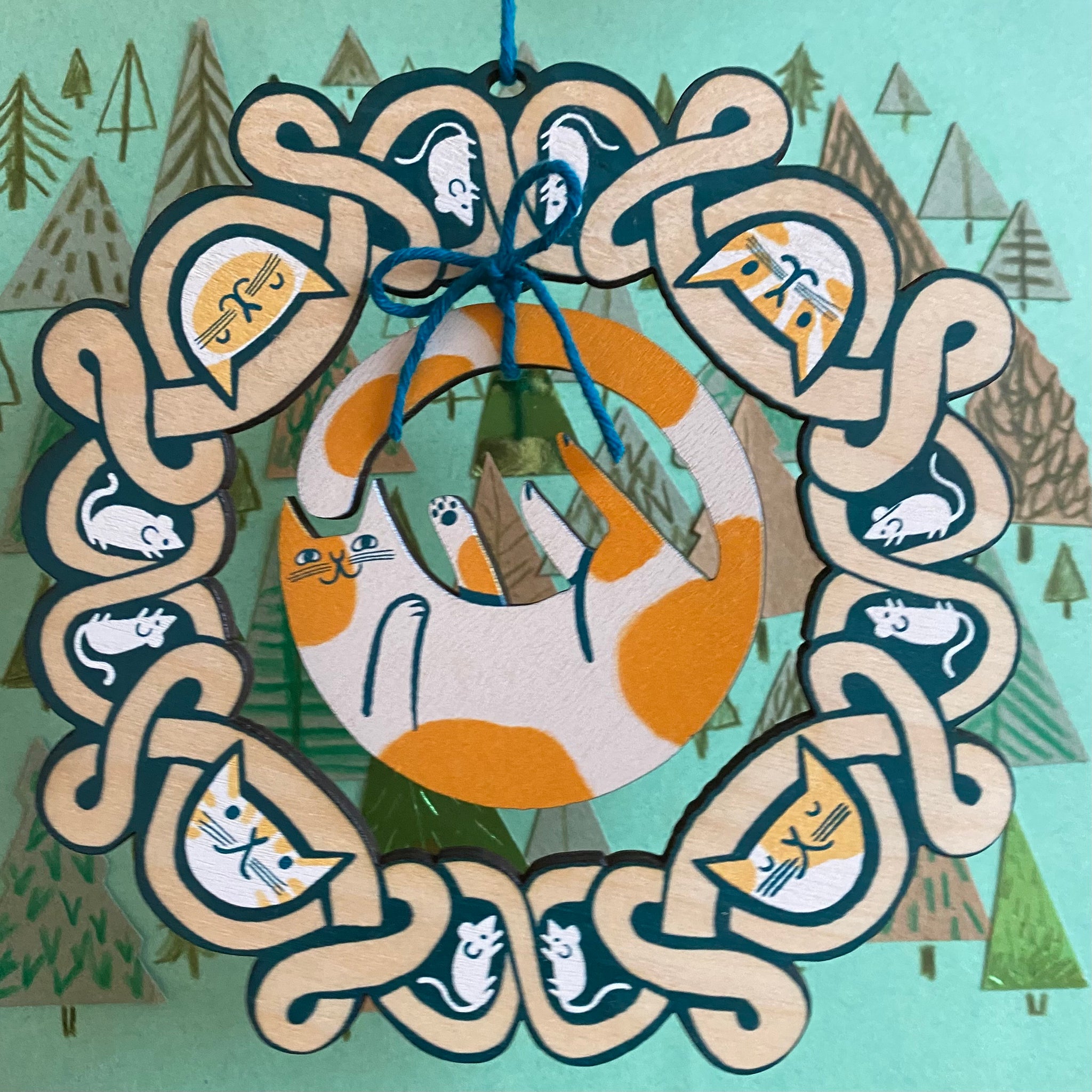 This decoration is printed on wood from an original illustration by myself and measures 15cm wide.