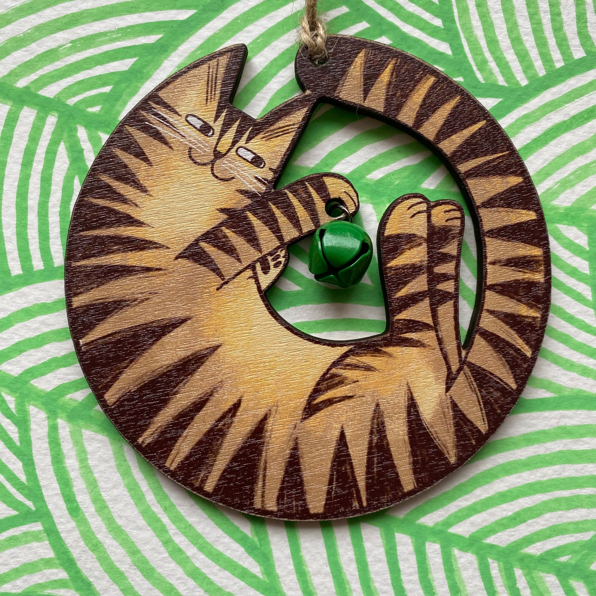 These decorations are printed on fsc certified wood and finished with random colours of bells.