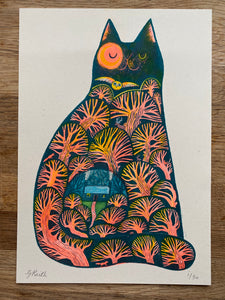 'Tree - the forest cat' original hand painted illustration